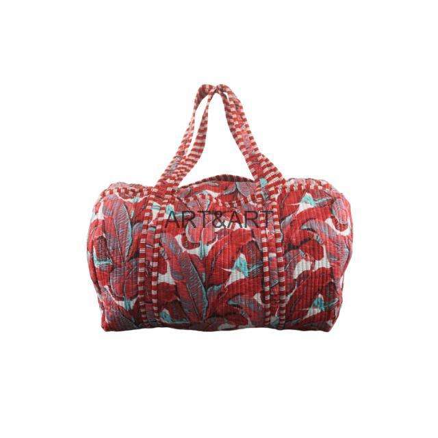 Handmade Striped Large Quilted Cotton Weekender Travel Bag for Women Eco-Friendly Vintage Style Shoulder Luggage Chains Tassel