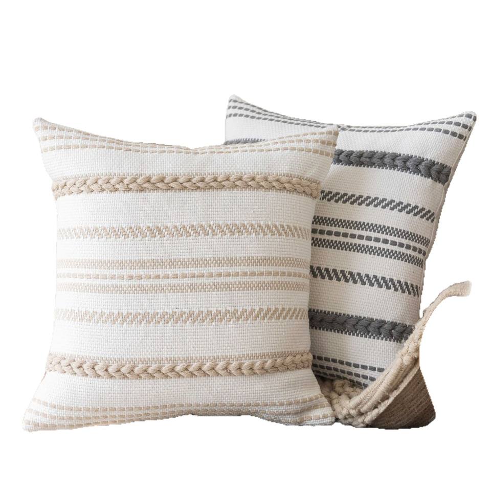Handmade Striped Pillow Cases Rectangle Beige Gray Polyester Cotton Home Decor Cushion Covers Living Room Sofa Throw Pillows