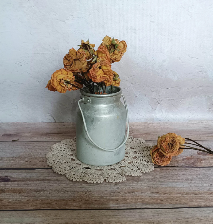 Handmade Stylish Aluminum Milk Canister Vintage Coastal Design Flower Vase Silver Base for Wedding Tabletop Display Centerpiece