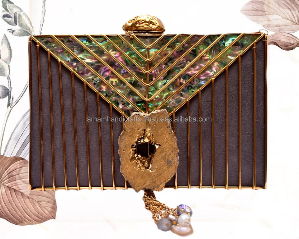 Handmade Stylish Brass Mother Pearl Clutch Bag Elegant Pearl Decoration for Bridal Trending Luxury Crafts for Wedding Parties