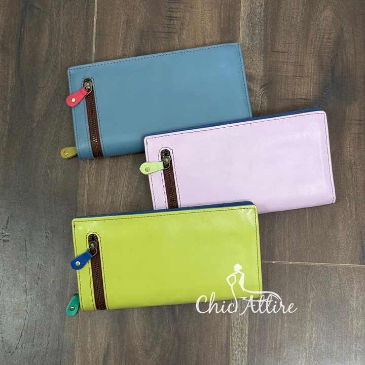 New Real Handmade Recycled Leather Stubby Color Women Clutches Stylish Bifold Multiuse Hand Purse ATM Card Holder Luxury Wallets