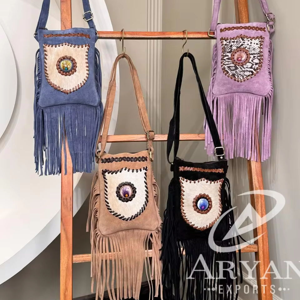 Product Name:Hair On Cowhide Suede Leather Fringe Purse