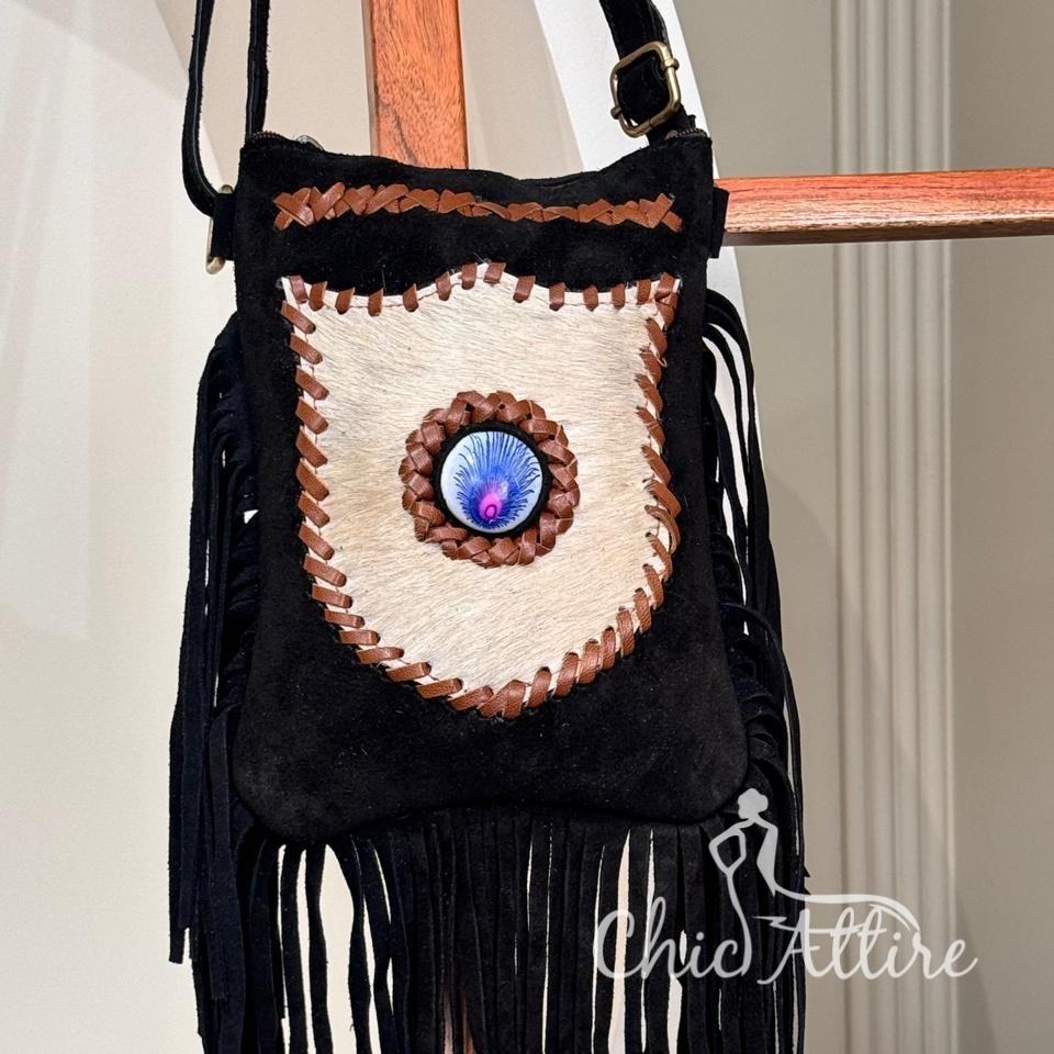 Handmade Suede Leather Crossbody Bag Boho Fringe Cowhide Leather Women Purse Eco-Friendly Genuine Leather Hippie Chic Beaded Bag
