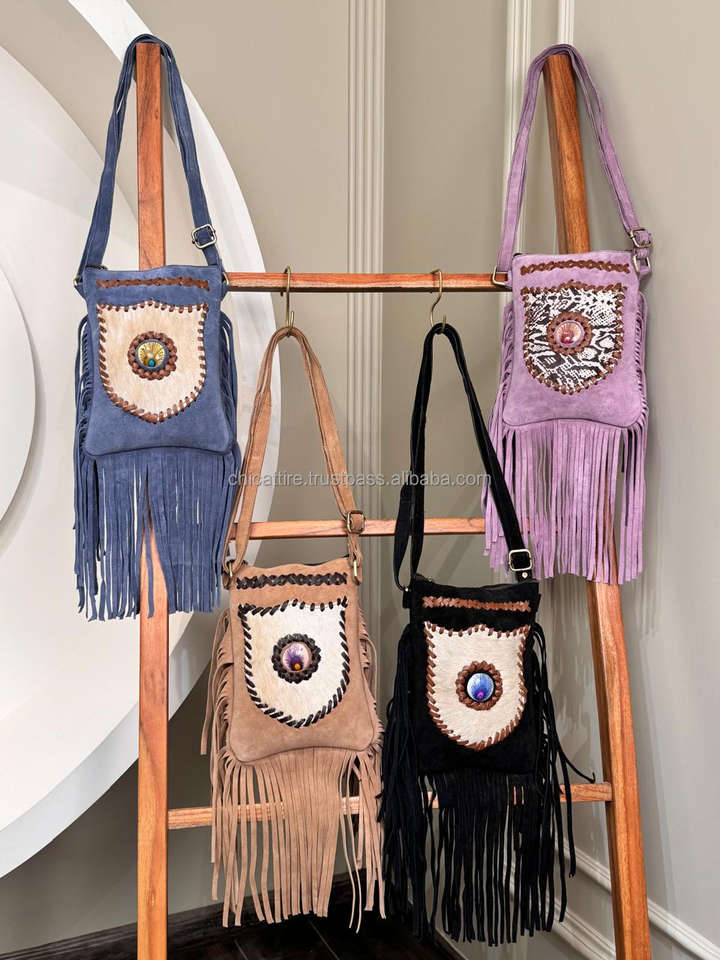 Product name:Hair On Cowhide Suede Leather Fringe Purse