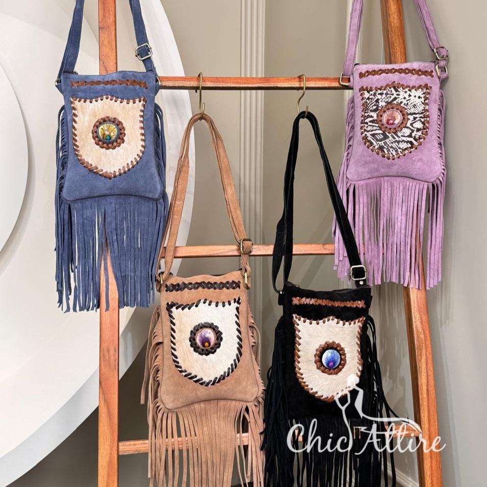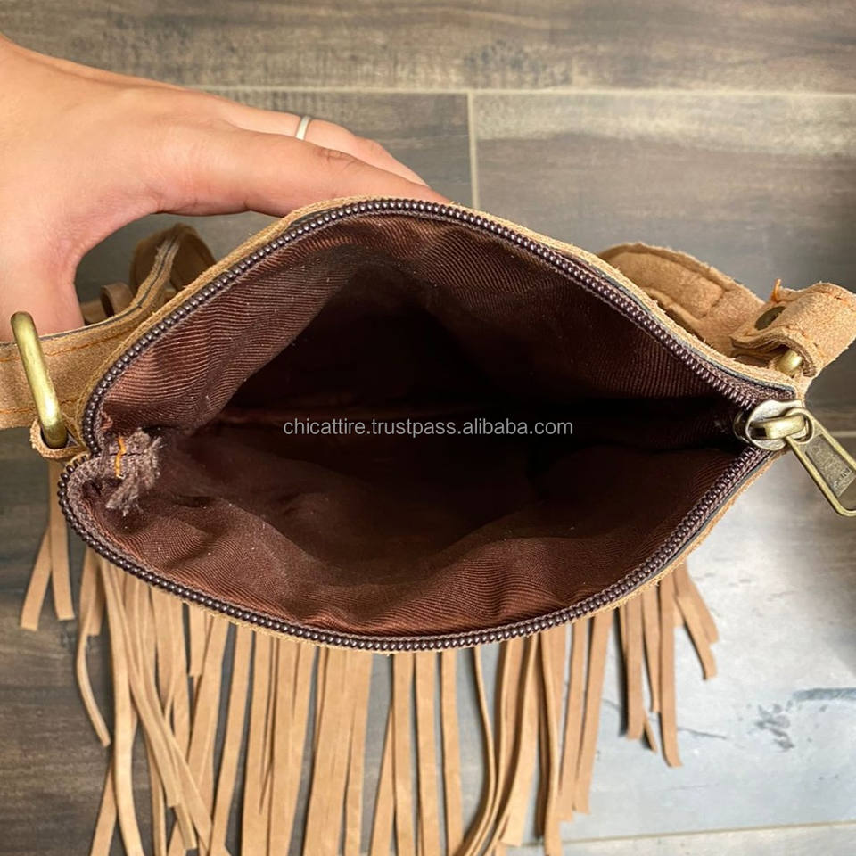 Product name:Hair On Cowhide Suede Leather Fringe Purse