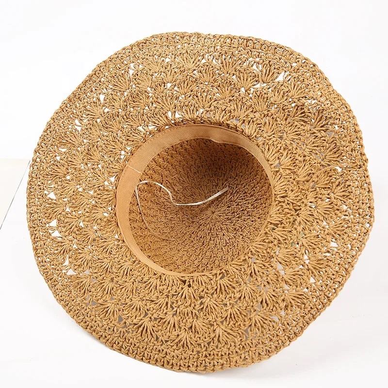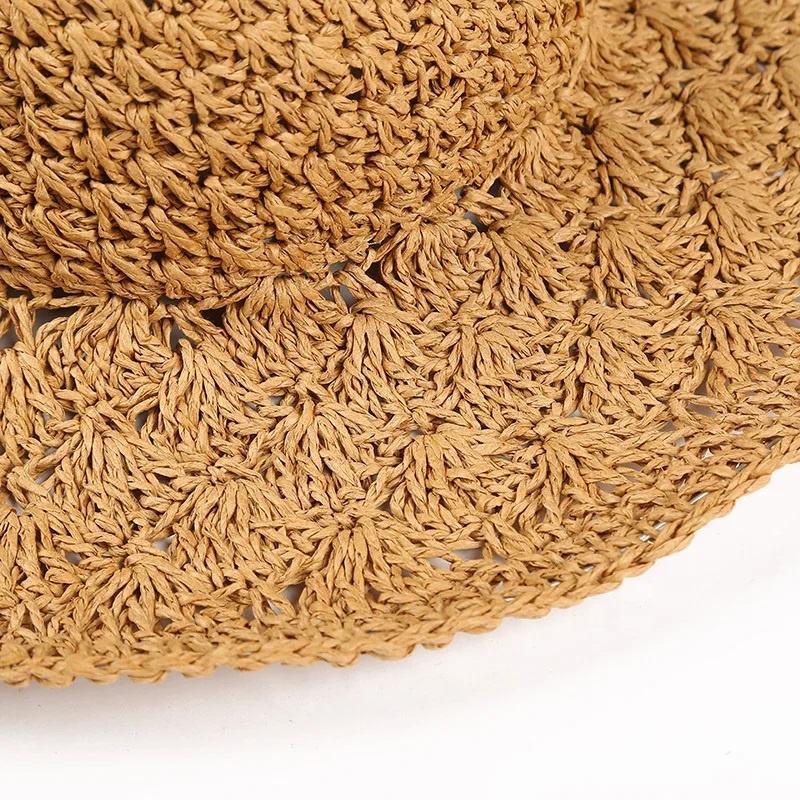 Handmade Summer Bucket Hat for Women Raffia Straw Paper Knitted Pattern Plain Visor Wholesale Summer Beach Panama Hat