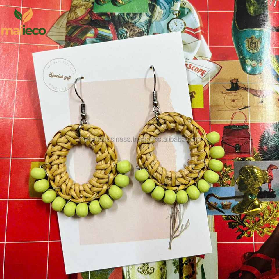Descriptions:Rattan Hoop Earrings Personalized Summer Fashion