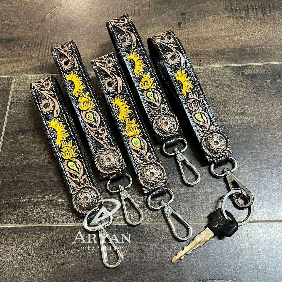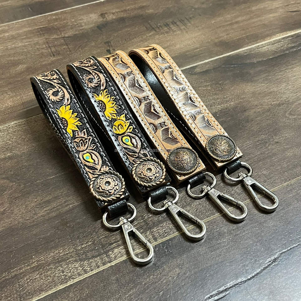 Product Name:Hand Tooled Genuine Leather Metal Concho Wristlet