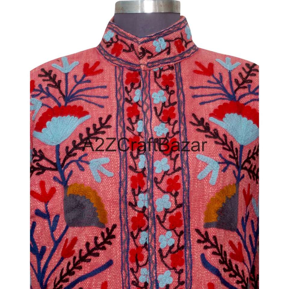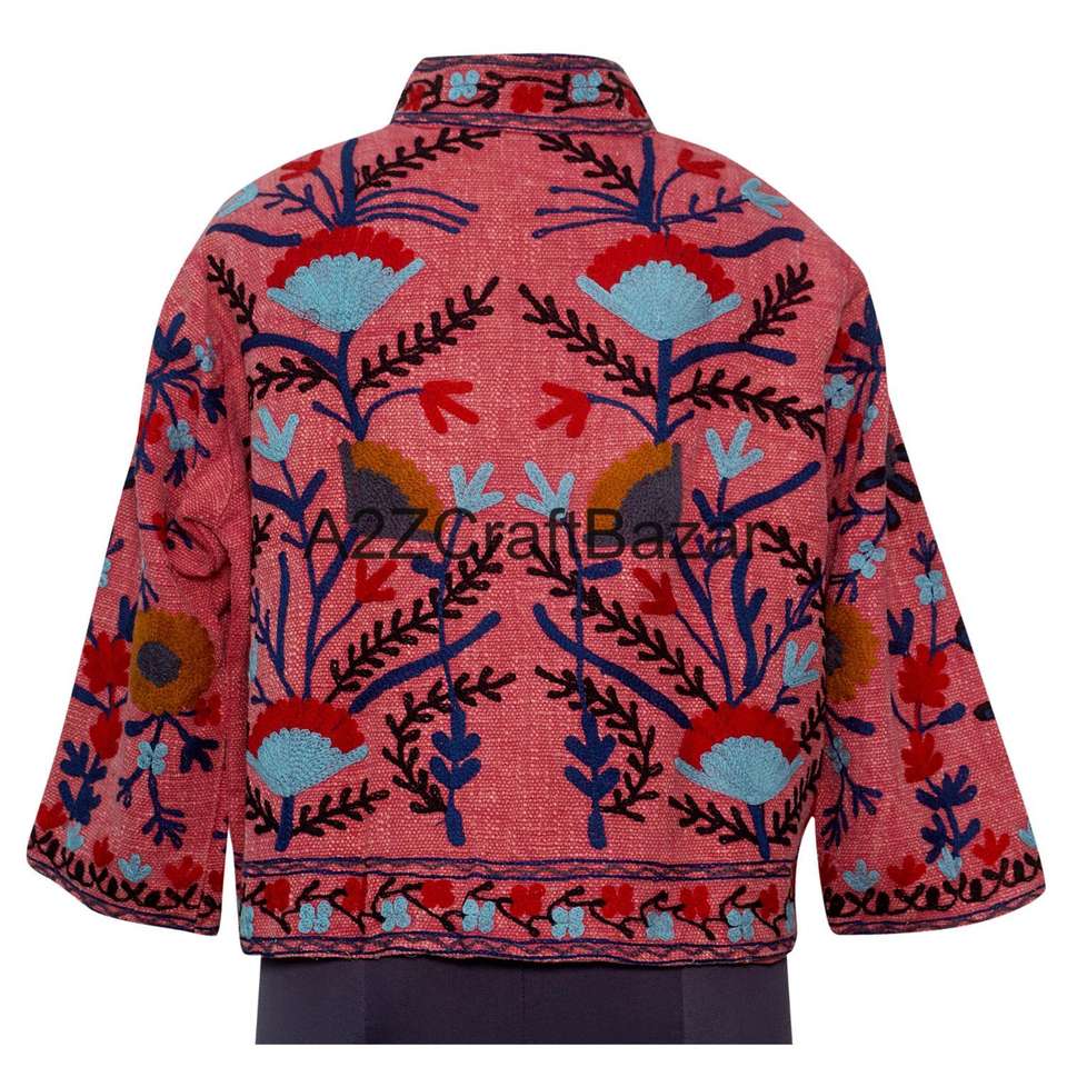 Handmade Suzani Design Winter Spring Bomber Jacket Machine Embroidery Floral Pattern Knitted Cotton Fabric Eco-Friendly Quick