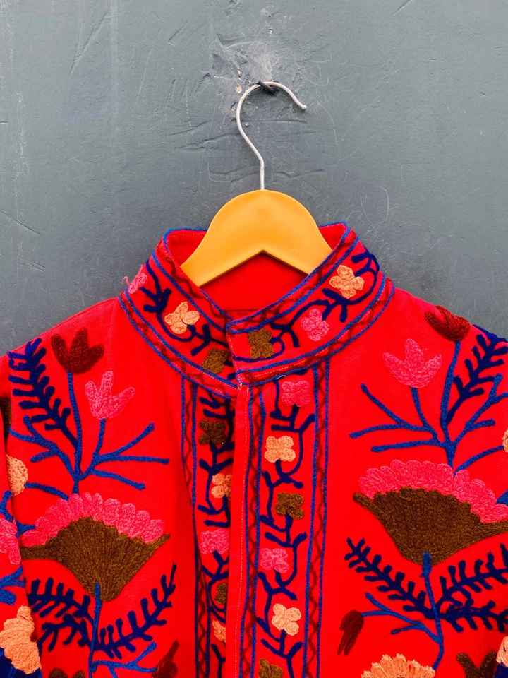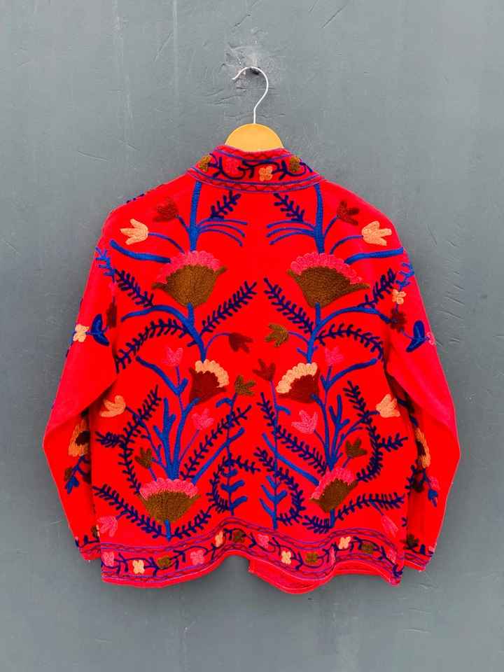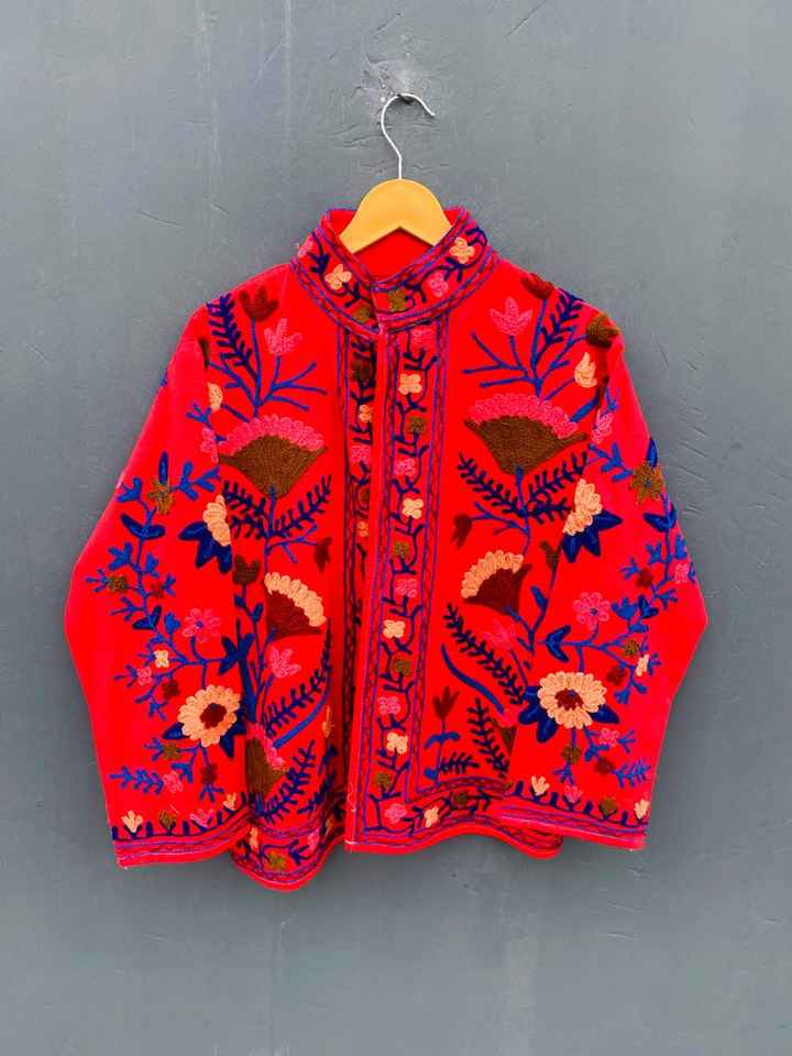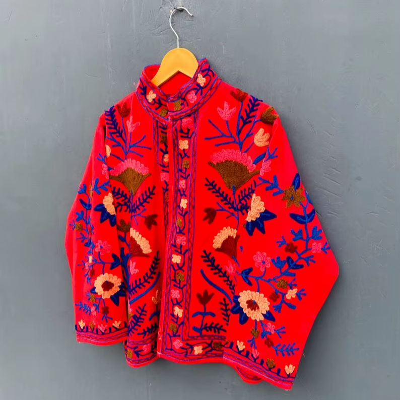 Handmade Suzani Embroidered Cotton Jacket Indian Floral Overcoat Boho Ethnic Coat for Women