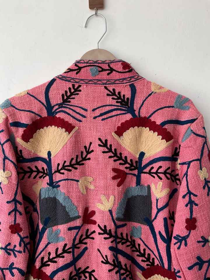 Handmade Suzani Embroidery Jacket Boho Quilted Cotton Coat Floral Embroidered Outerwear Traditional Ethnic Fashion for Women