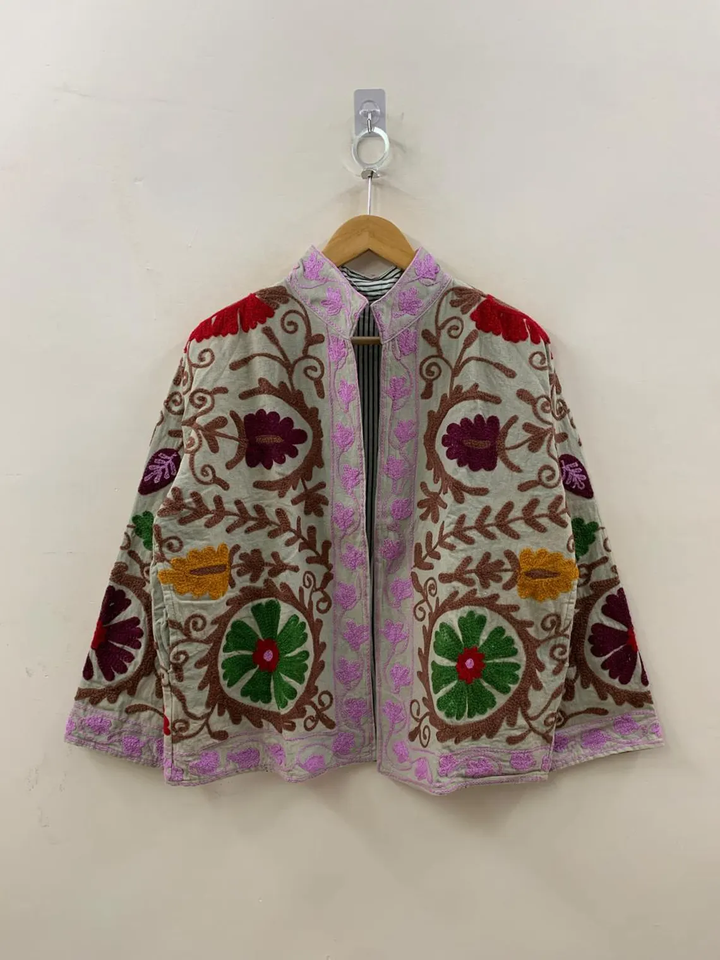 Handmade Suzani Embroidery Velvet Jacket Vintage Boho Coat Unisex Winter Jacket Ethnic Chic Outerwear