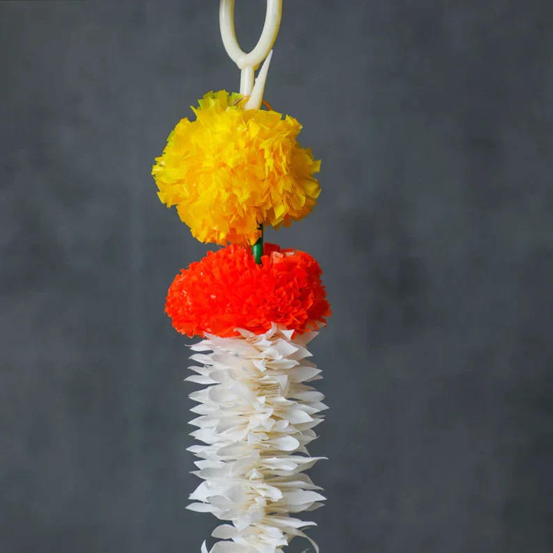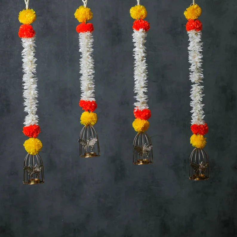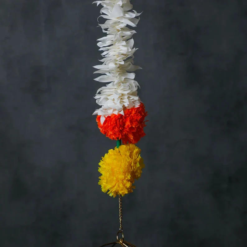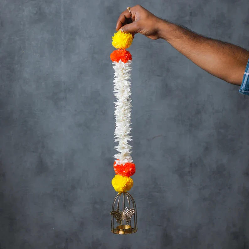 Handmade T Light Candle Holder Jasmine Pom Pom Wall Hanging for Wedding and Temple Stage Decoration