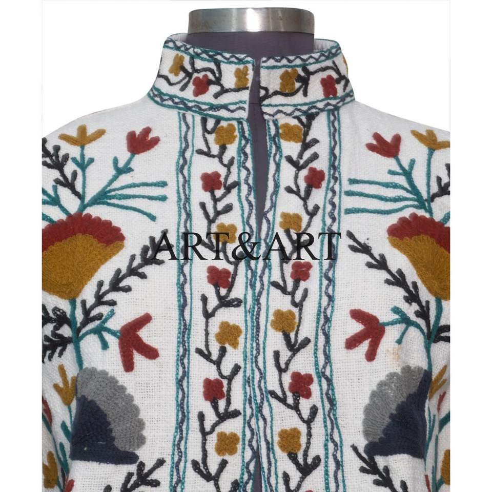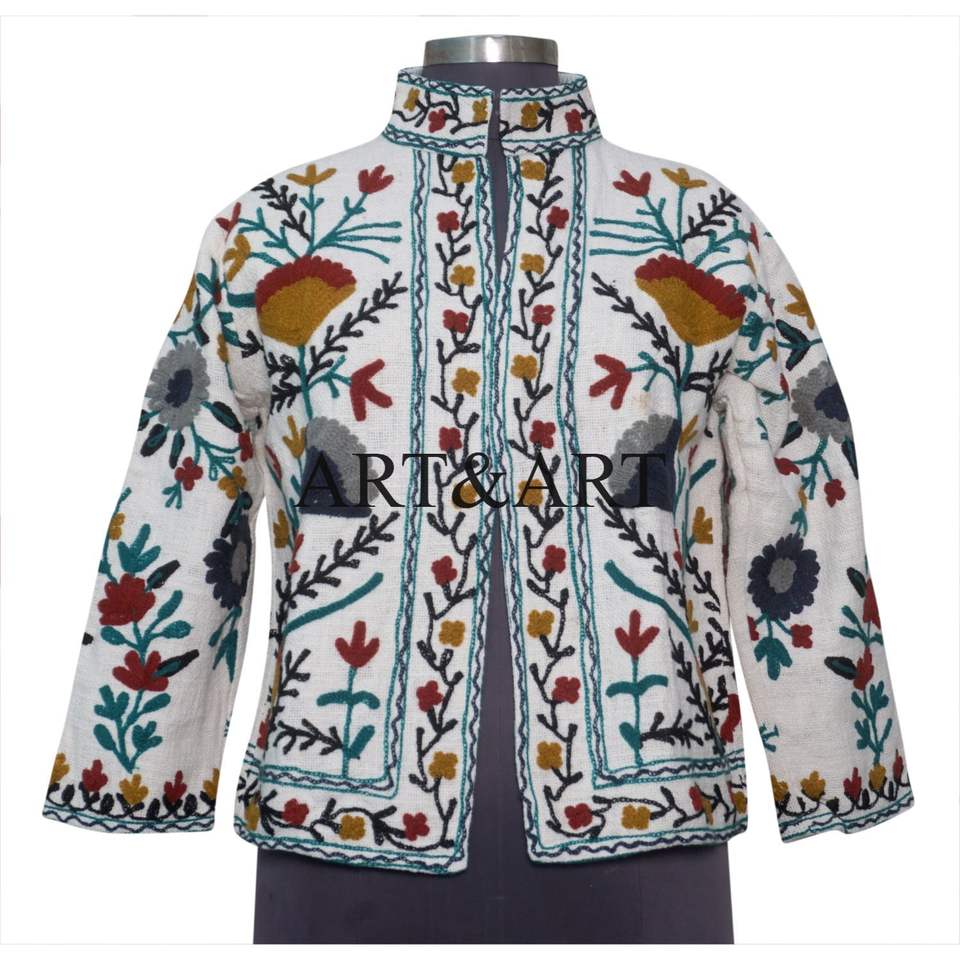 Handmade Quilted Cotton Knitted Suzani Embroidered Women's Winter Jacket with Embroidered Fabric Cozy Winter Wear
