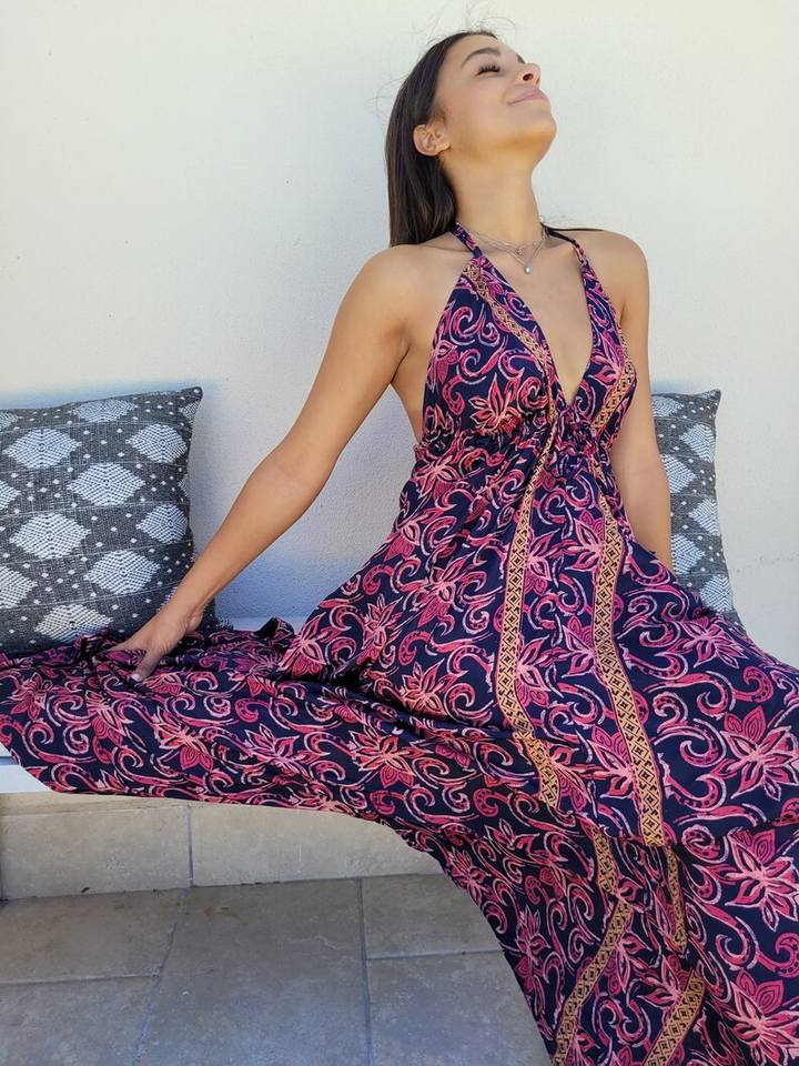 Handmade Tie-Dye Boho Maxi Dress Custom Brand Evening Party Kimono Kaftan Tassel Tie Neck for Resorts Parties Hot Casual Dress