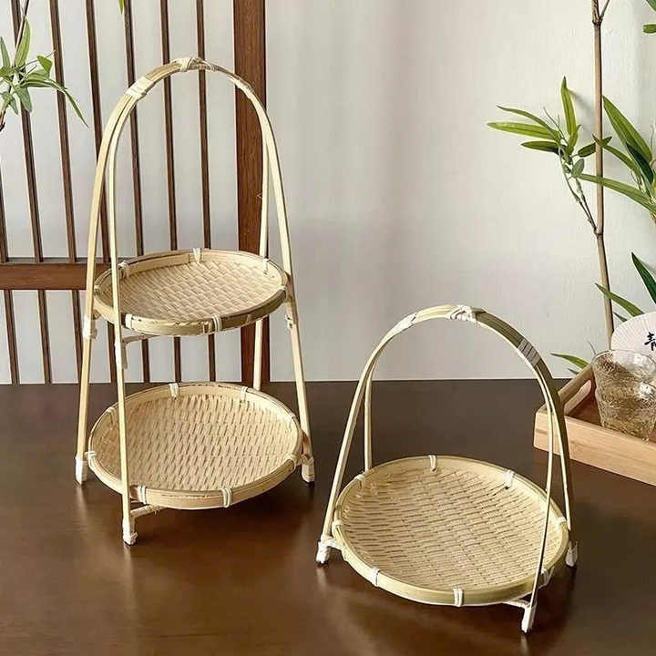 Handmade Tiered Bamboo Cake Tray Rustic Basket Rack for Wedding Decoration & Dessert Display Made In Vietnam