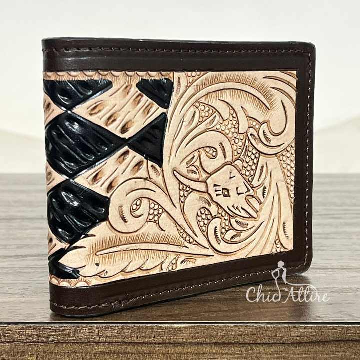 Hand Tooled Leather Checkered Men's Bifold Wallet