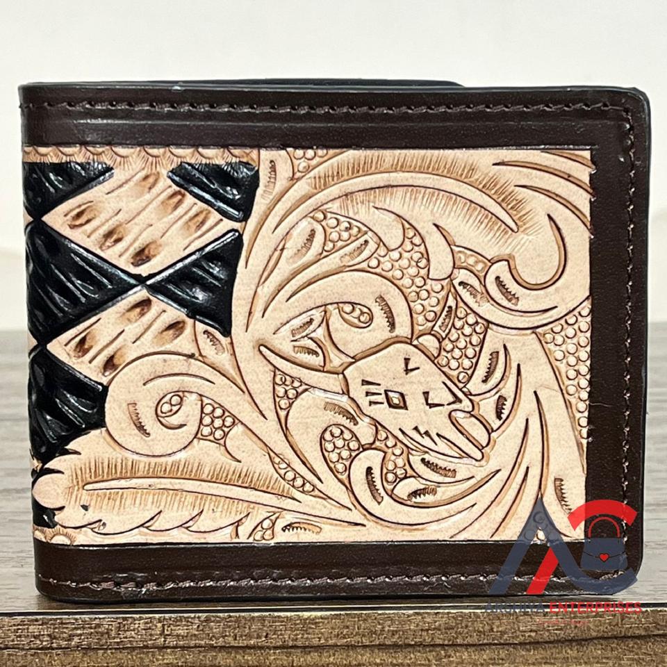 Handmade Tooled Cow Leather Short Wallet Genuine Leather Bull Tooling Casual Purse ID Cards Holder Money Pocket Bifold Wallets