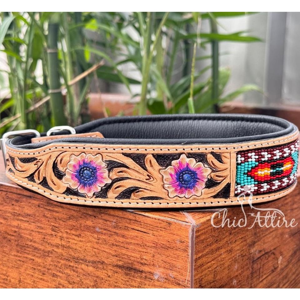 Product name:Hand Tooled Leather Beaded Dog Collar