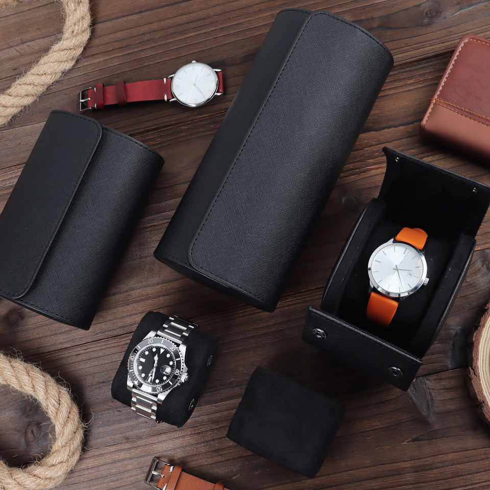 Handmade High Quality Protective Watch Roll Portable Case with 3 Slots Custom Logo Boxes