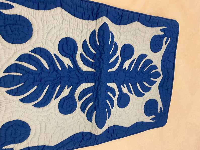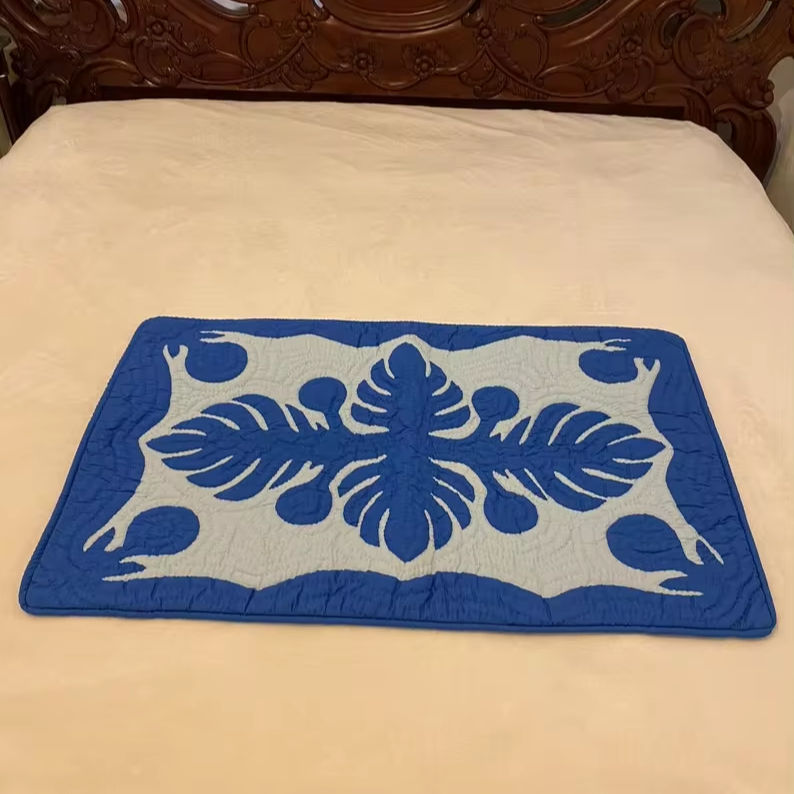 Handmade Traditional Hawaiian Quilt Pillow Cover Single Blue Floral Printed Lightweight 35% Cotton 65% Polyester Vintage Style