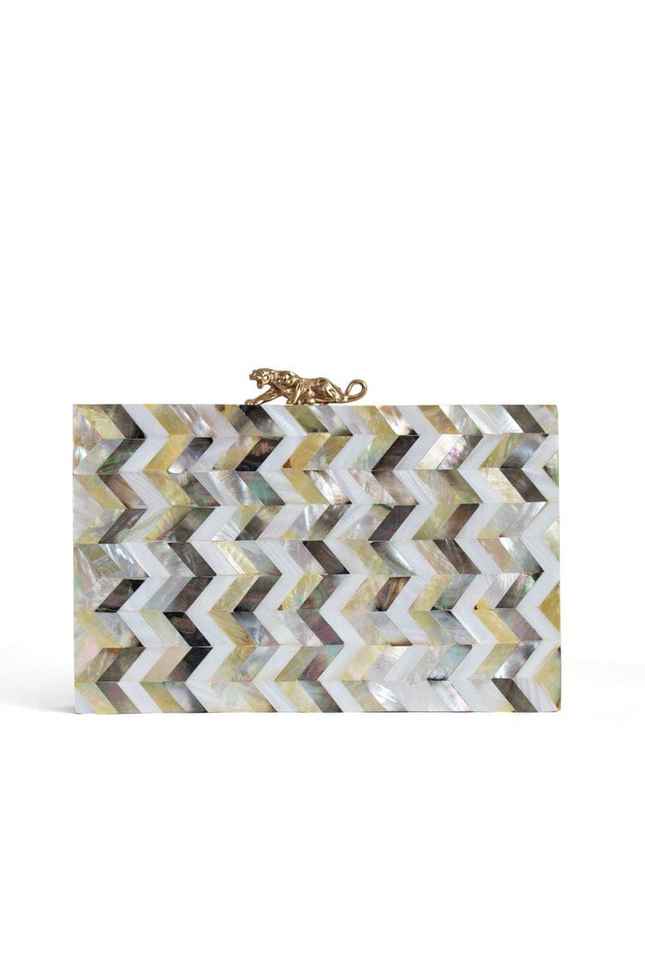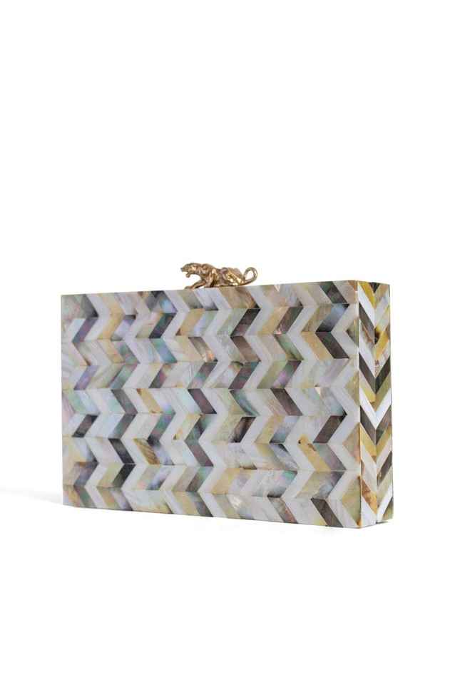 Handmade Traditional Ladies Fashion Clutch Handbags Mother Pearl Inlay Geometric Pattern Design PVC Lining Zipper Closure Type