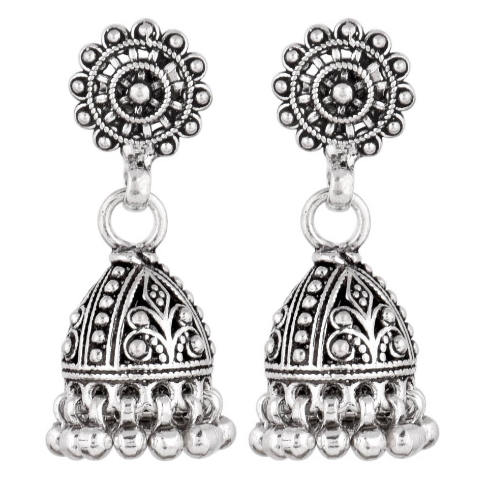 Handmade Traditional Stylist Studded 92.5 Sterling Silver Earrings Ethnic Indian Jhumka Dangle Earrings for Women NSJ-621/44960