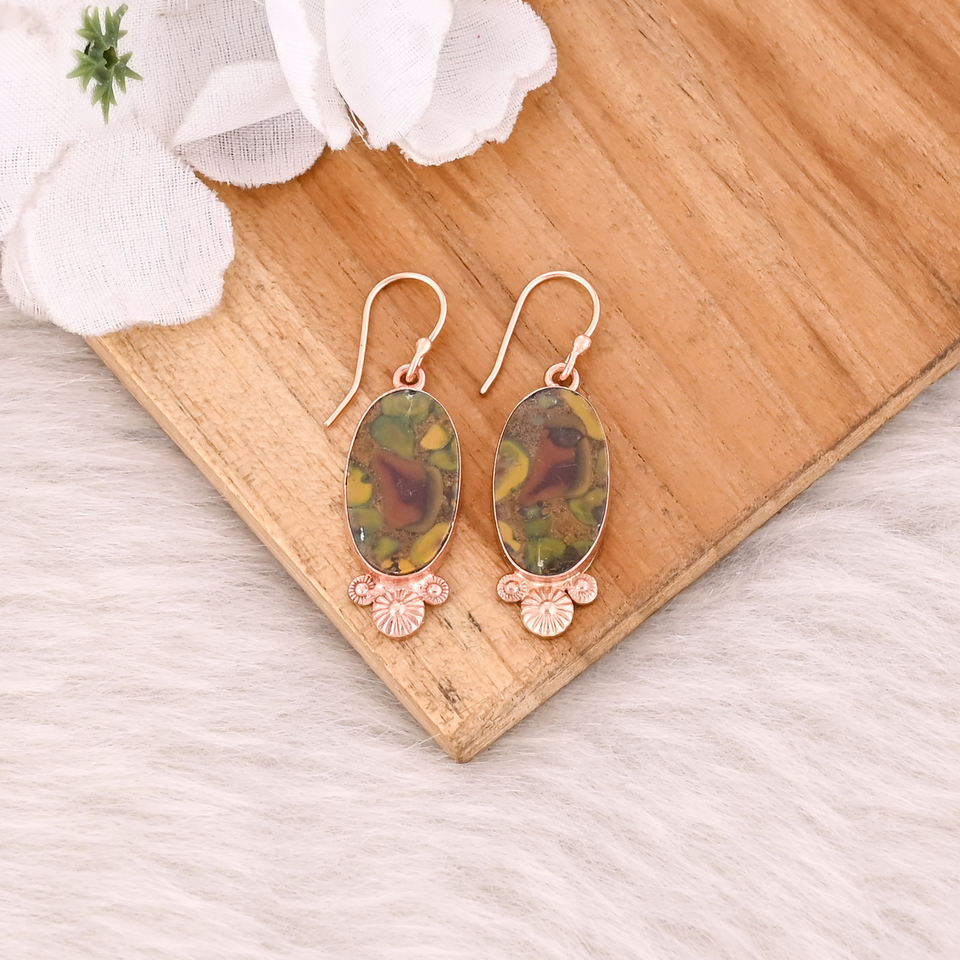 Handmade Trendy Brass Jewelry Rose Gold-Plated Fruit Jasper Dangle Earrings Perfect Wedding Fashion Gift Jewelry