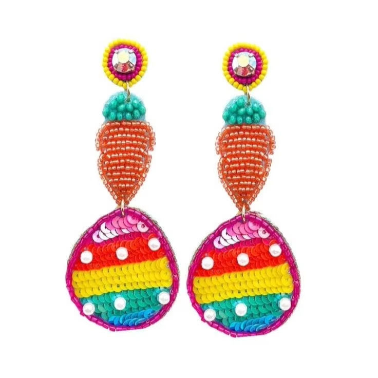 Handmade Trendy Easter Beaded Carrots and Eggs Drop Earrings From India Fashion Stud Earrings for Holiday Celebrations