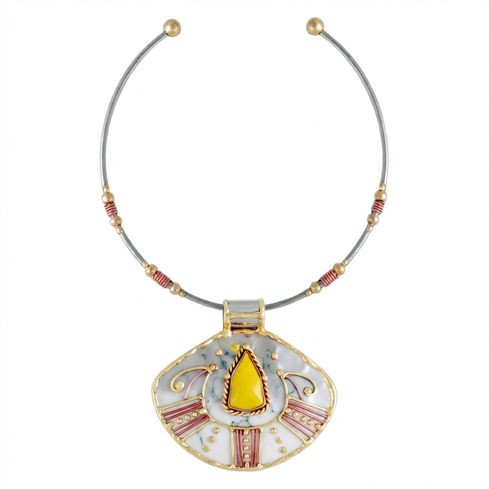 Handmade Tri-Metal Statement Torque Necklace Tribal Style Collar Jewelry for Women Gift For Her