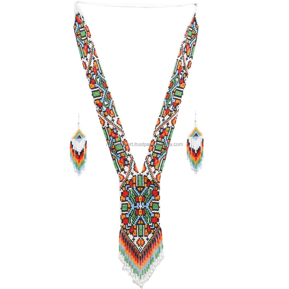Handmade Trible Glass Seed Beaded Necklace and Pearl Multi-Strand Set Funky Fashion Jewellery for Girls and Women