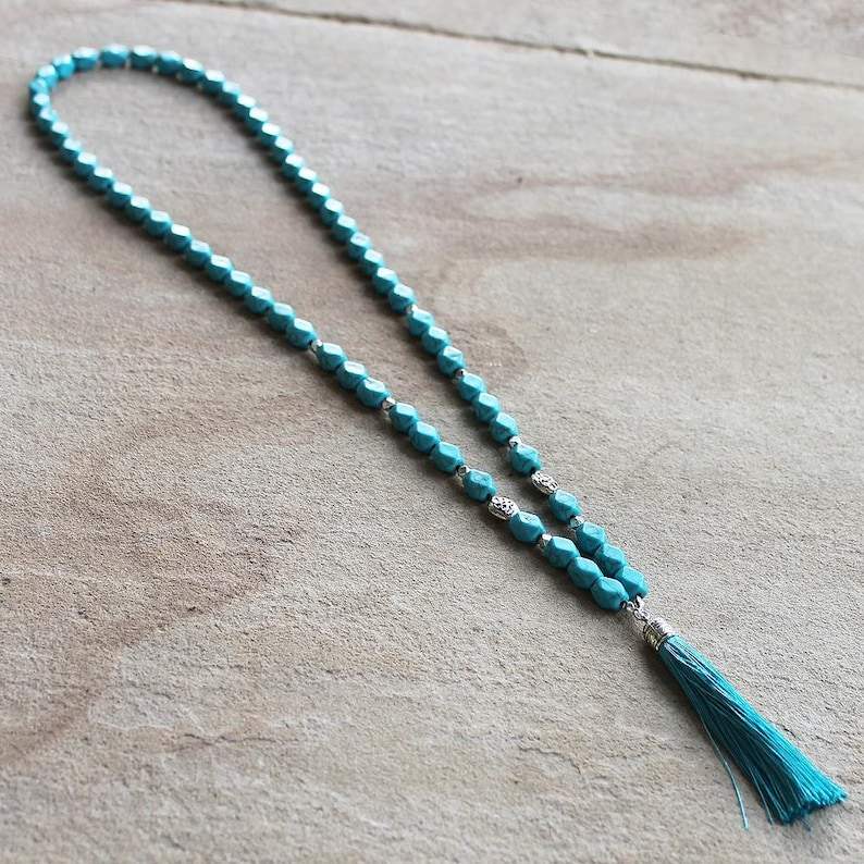 Handmade Turquoise Blue Beaded Necklace Natural Faceted Statement Gemstone Turquoise Agate Shell Extra Long Necklace