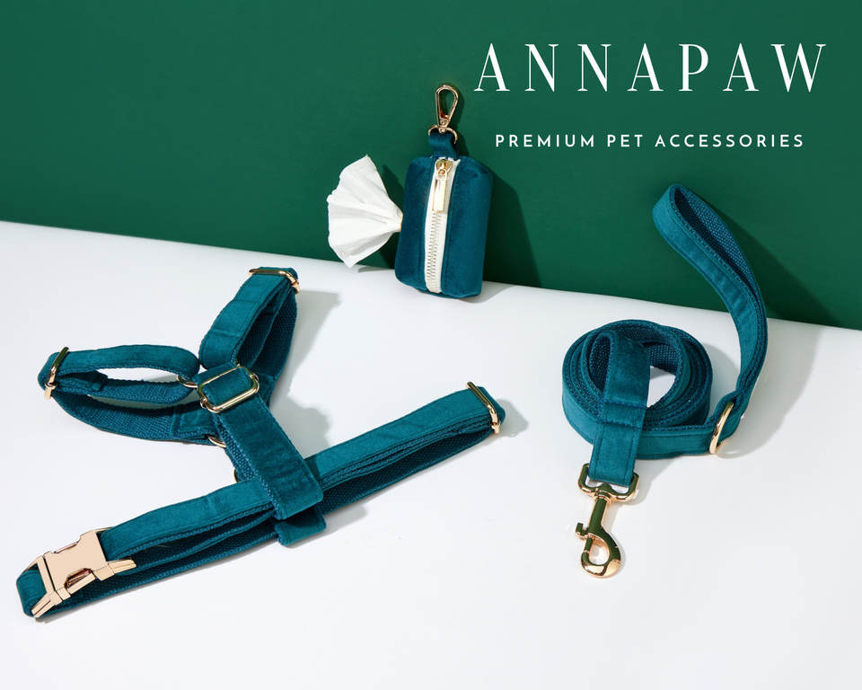 Handmade Turquoise Velvet Set Personalized Puppy Bowtie Fancy Dog Collar & Leash Bowtie for Wedding Gift
