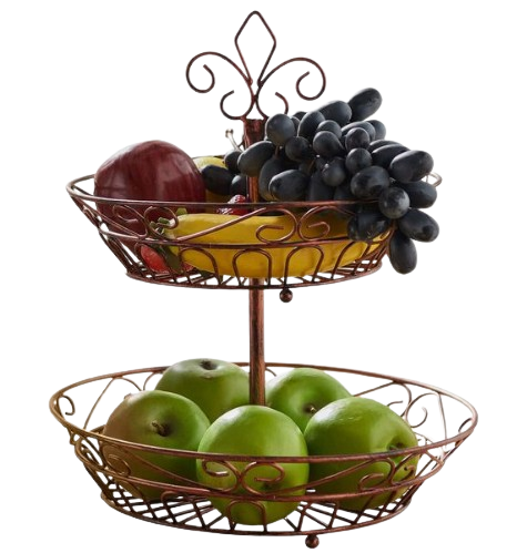 Handmade Two Tier Decorative Metal Wire Fruit Basket New Design Kitchenware Tabletop Metal Fruit Storage Basket