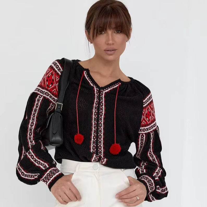 Handmade Ukrainian Knitted Embroidered Blouse Women's Traditional Vishivanka Shirt Washable Natural Made Ukraine Perfect Gift