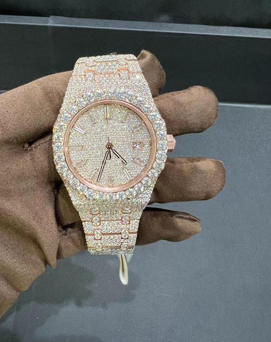 Handmade Unisex Diamond Dial Window Wrist Watch Fully Automatic Movement Luxurious Stainless Steel Band 30mm for Men Party Wear