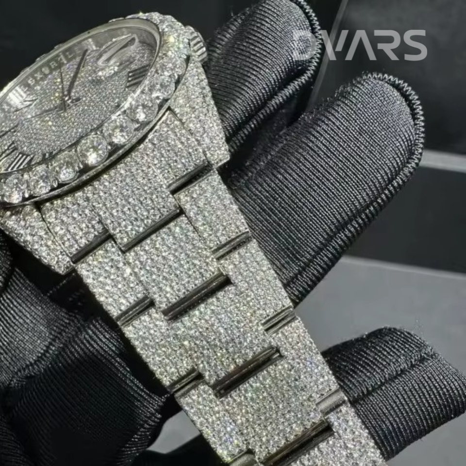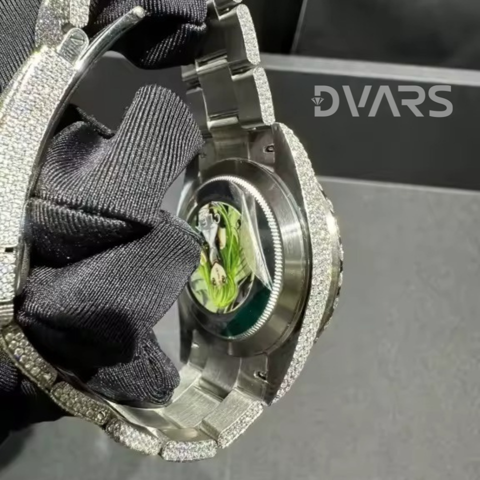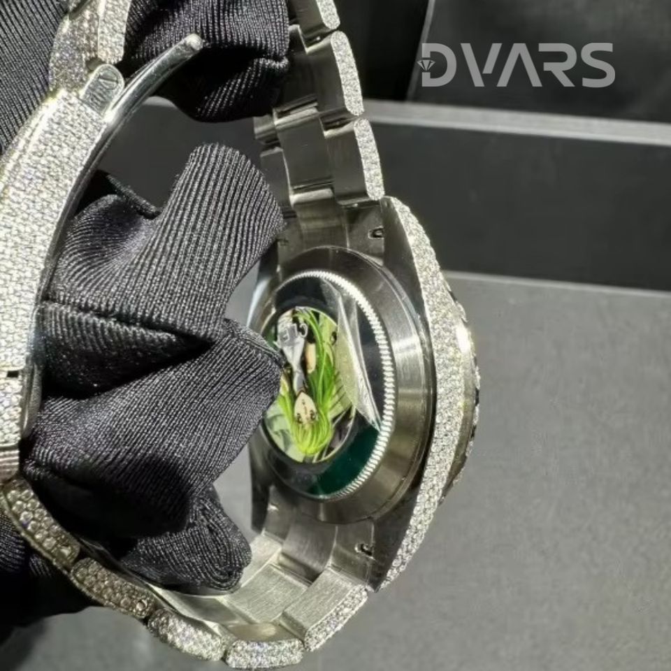 Handmade Unisex Mechanical Watch Moissanite VVS Diamond Yellow Gold ETA Movement Glass 3BAR Water Resistant-Customizable