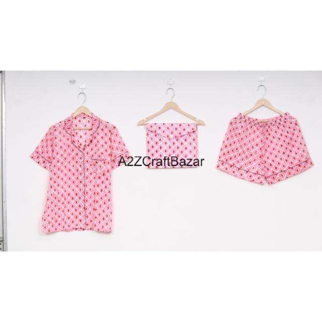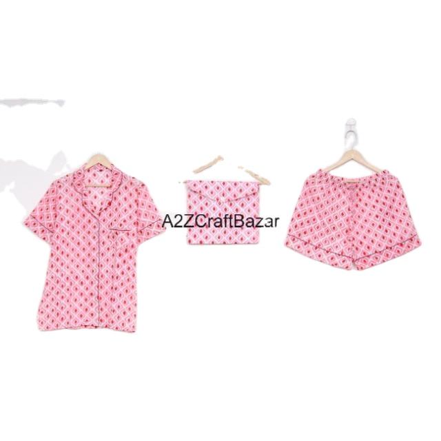 Handmade V-Neck Cotton Short Pajama Set for Women Floral Printed Nightwear Sexy Cherry Pattern Bridesmaid Gift for Spring