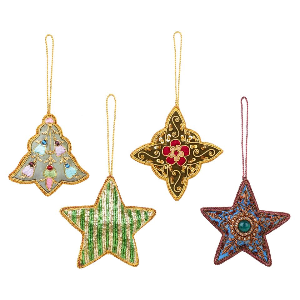 Handmade Velvet Satin Christmas Decorations Customized Beaded Embroidered Star Heart Butterfly Giraffe Ornaments Dog Ornament