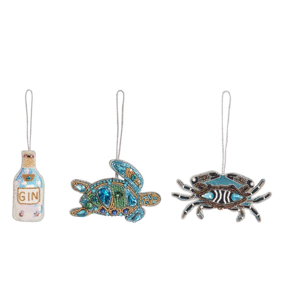 Handmade Velvet Satin Christmas Ornaments Santa Birds Sea Horse Crab Embroidered Tree Decoration Custom Logo Customized