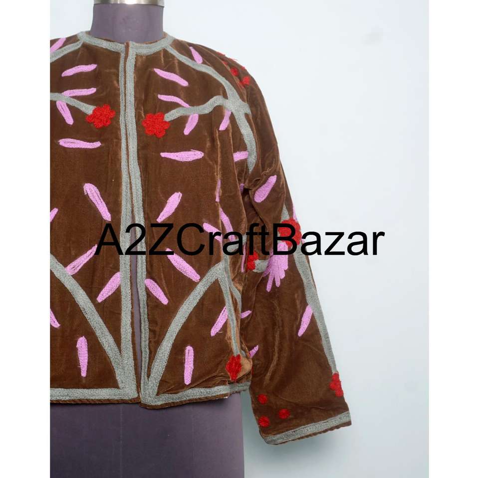 Handmade Velvet Soft Breathable Suzani Cotton Lining Winter Autumn Hand Embroidered Floral Outerwear Regular Casual Jacket