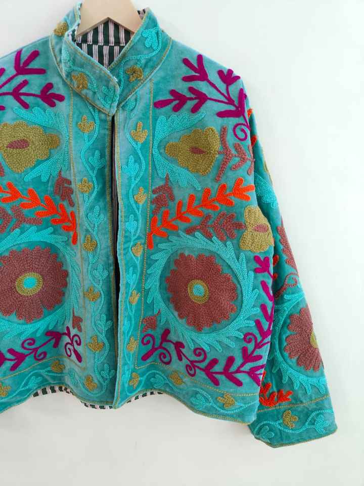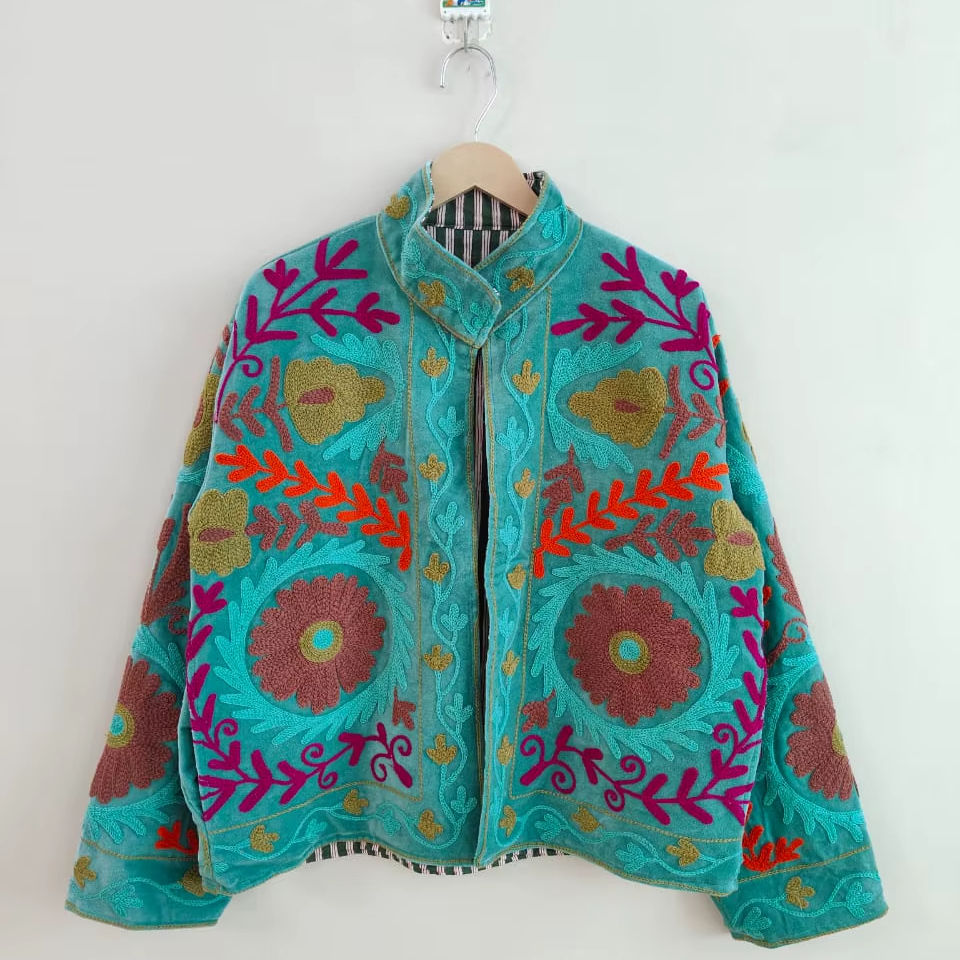 Handmade Velvet Suzani Hand Embroidered Jacketn Handmade Indian Style Coat Boho Bridal Robe Festival Jacket Christmas Gift