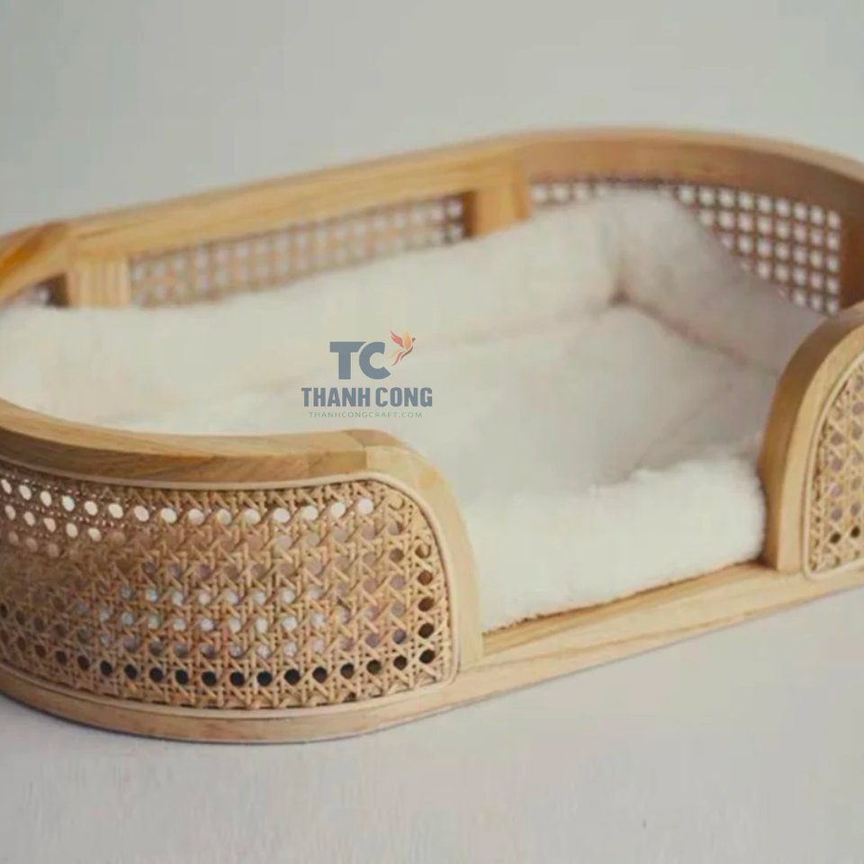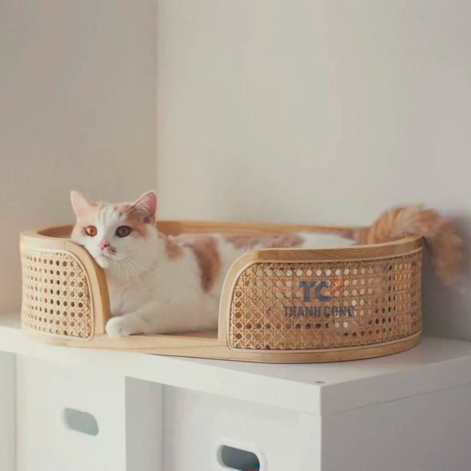 Handmade Vietnam Rattan Wood Cat Bed Dog Bed Sofa Pet Natural Lovely House