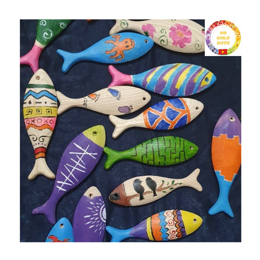 Handmade Vietnam Wooden Fish Rustic Ornament for Cafe Restaurant Garden Decor and Nautical Wall Hanging