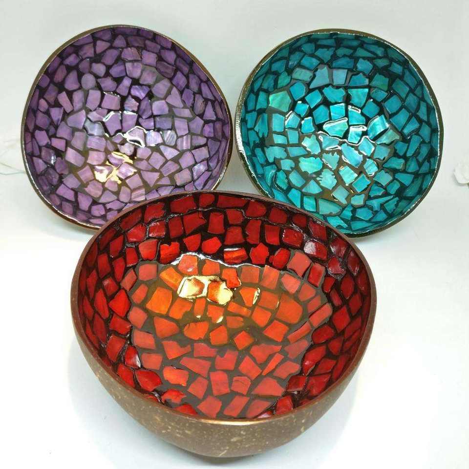Handmade Vietnamese Mother of Pearl Eggshell Seashell Inlaid Lacquer Coconut Shell Bowls With Custom Colors