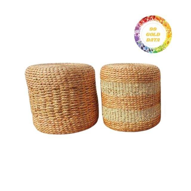 Handmade Vietnamese Water Hyacinth Round Ottoman And Soft Cushion Pad Perfect For Stylish And Functional Home Furniture