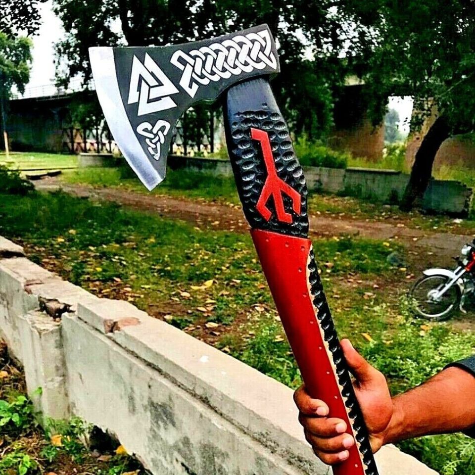 Handmade Viking Raven Axe Etched Rose Wood Handle with Leather Sheath