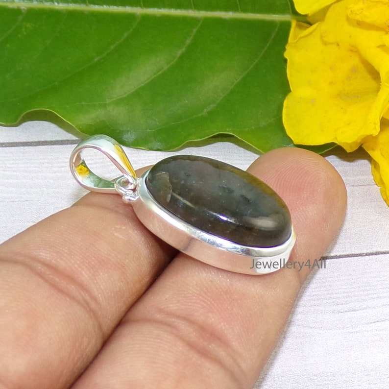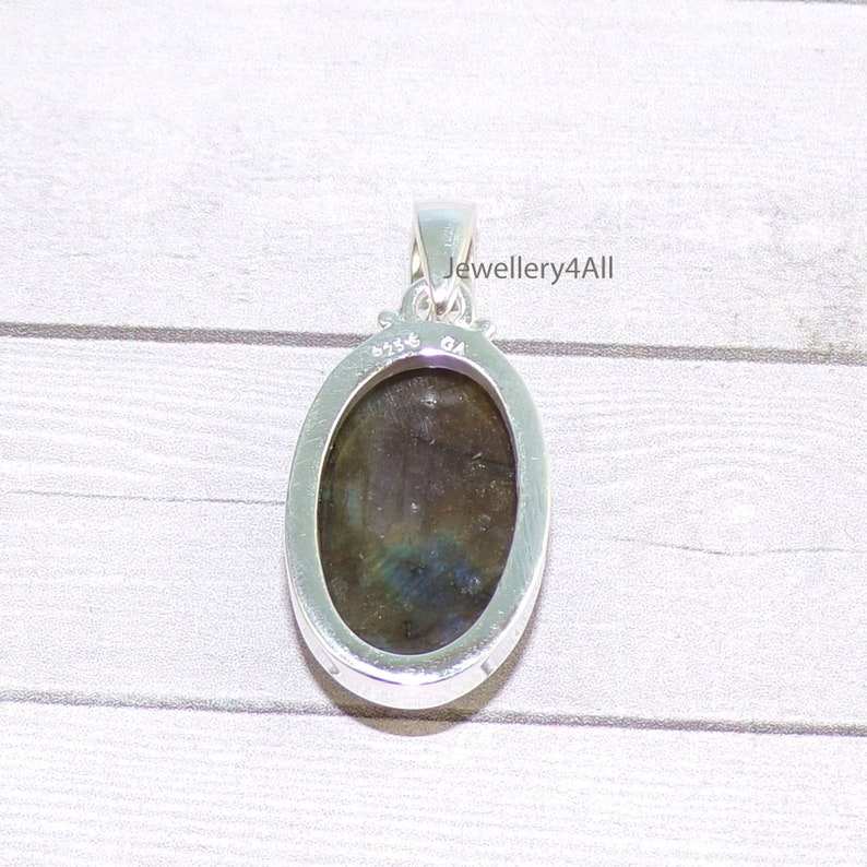 Handmade Vintage 925 Silver Gold-Plated Natural Purple Labradorite Pendant with Bezel Setting for Engagement