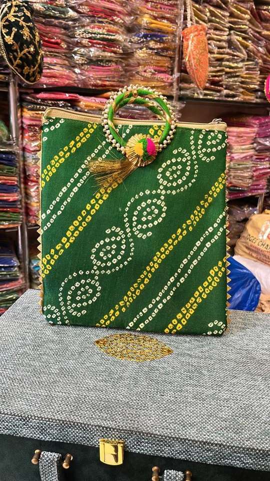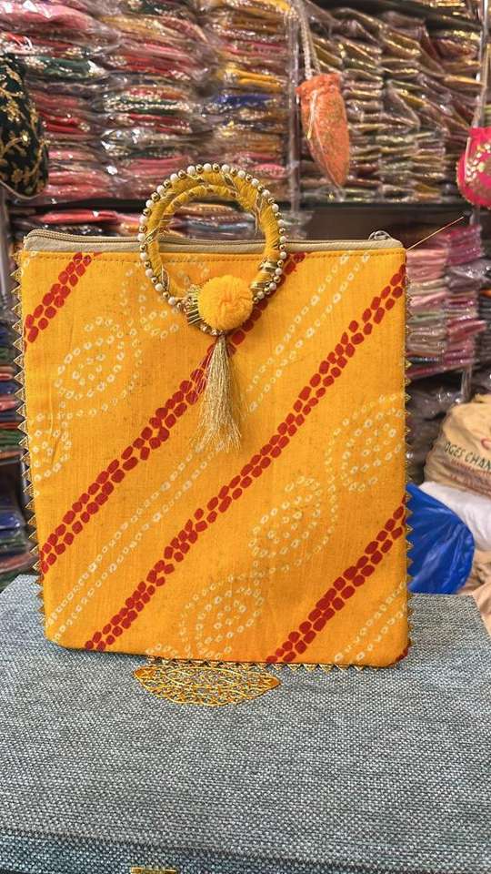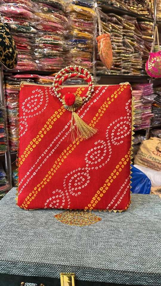 Handmade Vintage Bandhej Print Gift Bag with Two Handles Fashionable Shoulder Wedding Return Gift for Guests