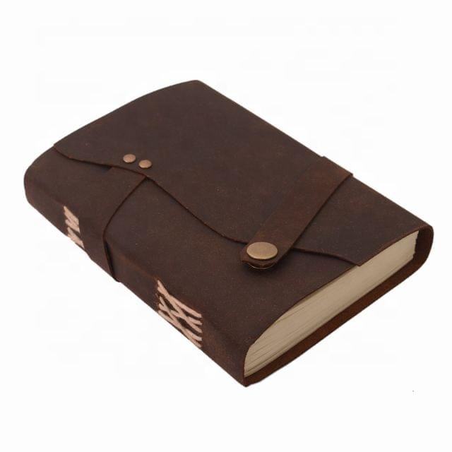 Handmade Vintage Brown Leather Journal-A5 Loose-Leaf Antique Sketchbook with Deckle Edge Cotton Paper & Stitched Binding